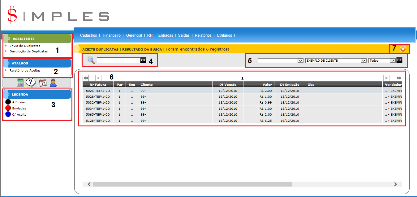 6. Grade de Duplicatas: Mostra todas as Duplicatas conforme os filtros descritos anteriormente.