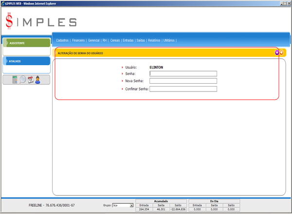 Para acessar a Tela de Alteração de senha é preciso ir ao Menu “Utilitários-Segurança-Alterar Senha”.