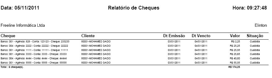 Para acessar este relatório é preciso ir ao Menu “ Relatórios-Financeiro-Cheques-Consulta”.