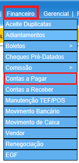 Para acessar o Contas a Receber, use o Menu “Financeiro - Contas a Pagar”.