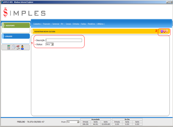 A tela de Culturas possui três elementos principais que executam funções distintas, conforme seguem: