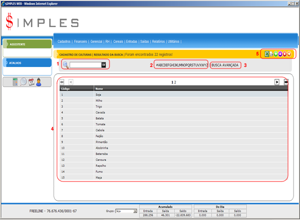 - Grade de Culturas: Mostra todas as Culturas conforme os filtros descritos anteriormente.
