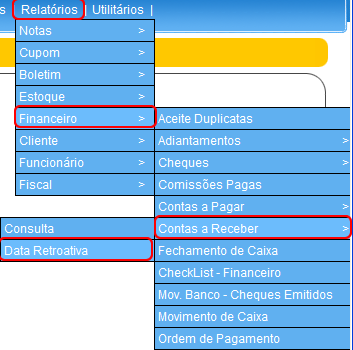 Para acessar este relatório é preciso ir ao Menu “ Relatórios-Financeiro-Contas a Pagar-Data Retroativa”.