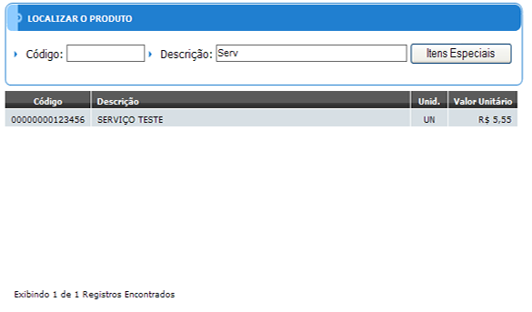 Na parte destacada em vermelho tem que clicar no botão incluir e em seguida aparecerá a tela abaixo para procurar os itens, que podem ser pesquisados pela descrição ou pelo código.