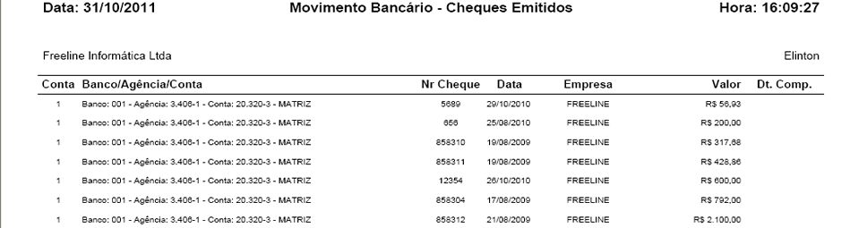Para acessar este relatório é preciso ir ao Menu “ Relatórios-Financeiro-Mov. Banco – Cheques Emitidos”.