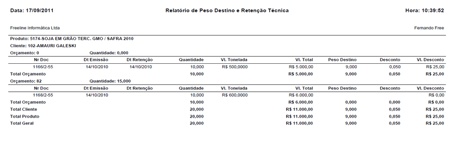 Para acessar este relatório é preciso ir ao Menu “ Relatórios-Notas/Cupons-Entradas e Saídas-Peso Destino”.