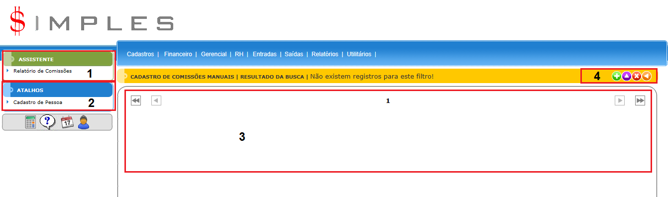 A tela de Comissão - Pagamentos - quatro elementos principais que executam funções distintas, conforme seguem: