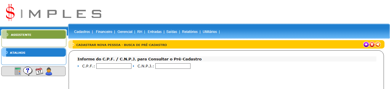 - Atalhos: Fornece acesso rápido a outras telas para cadastro.