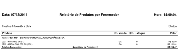 Para acessar este relatório é preciso ir ao Menu “ Relatórios-Estoque-Produtos por Fornecedor”.