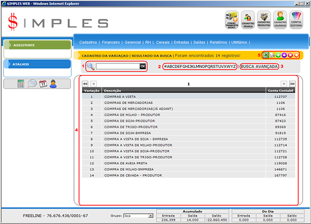 - Pesquisa: Permite executar uma pesquisa genérica usando a descrição da Variação.